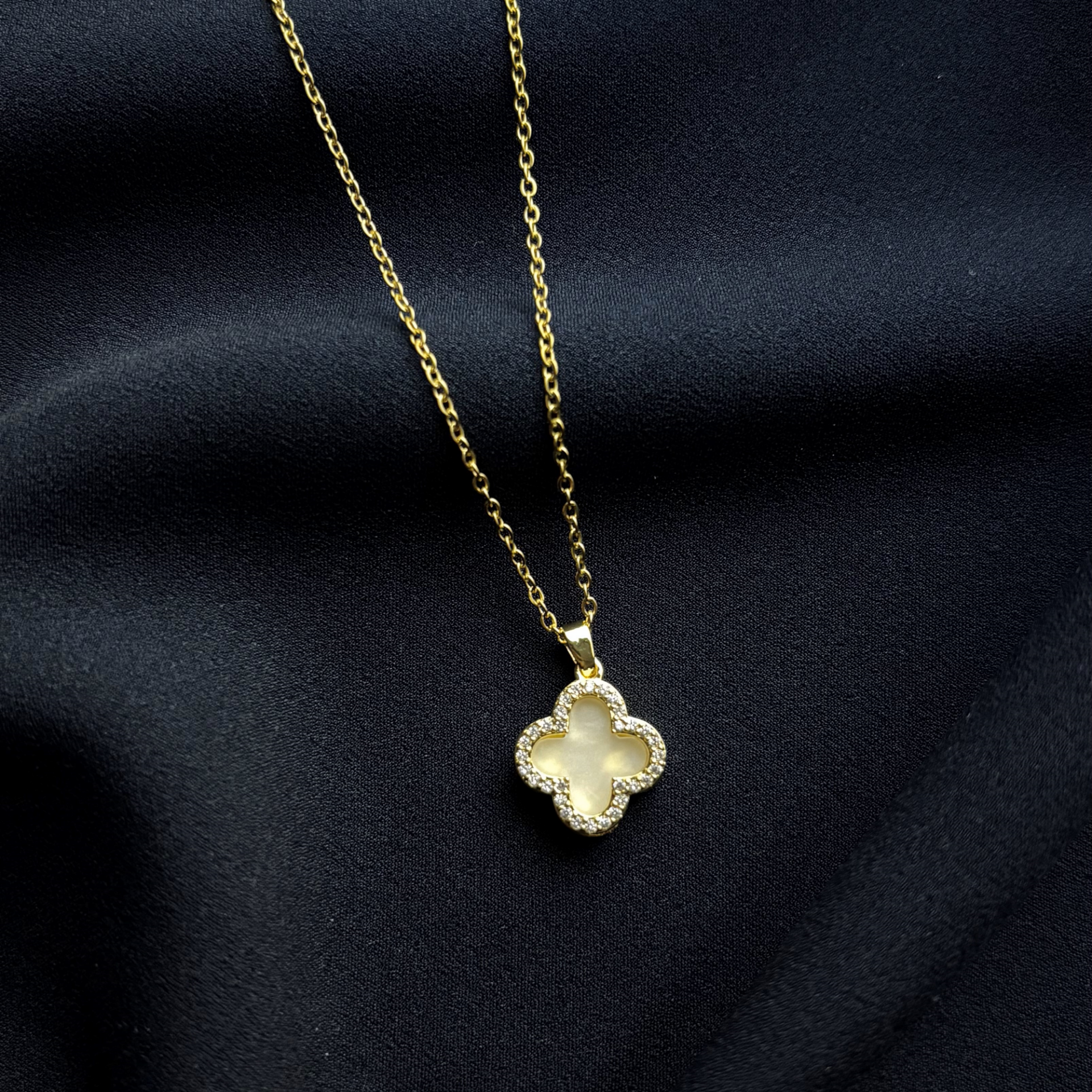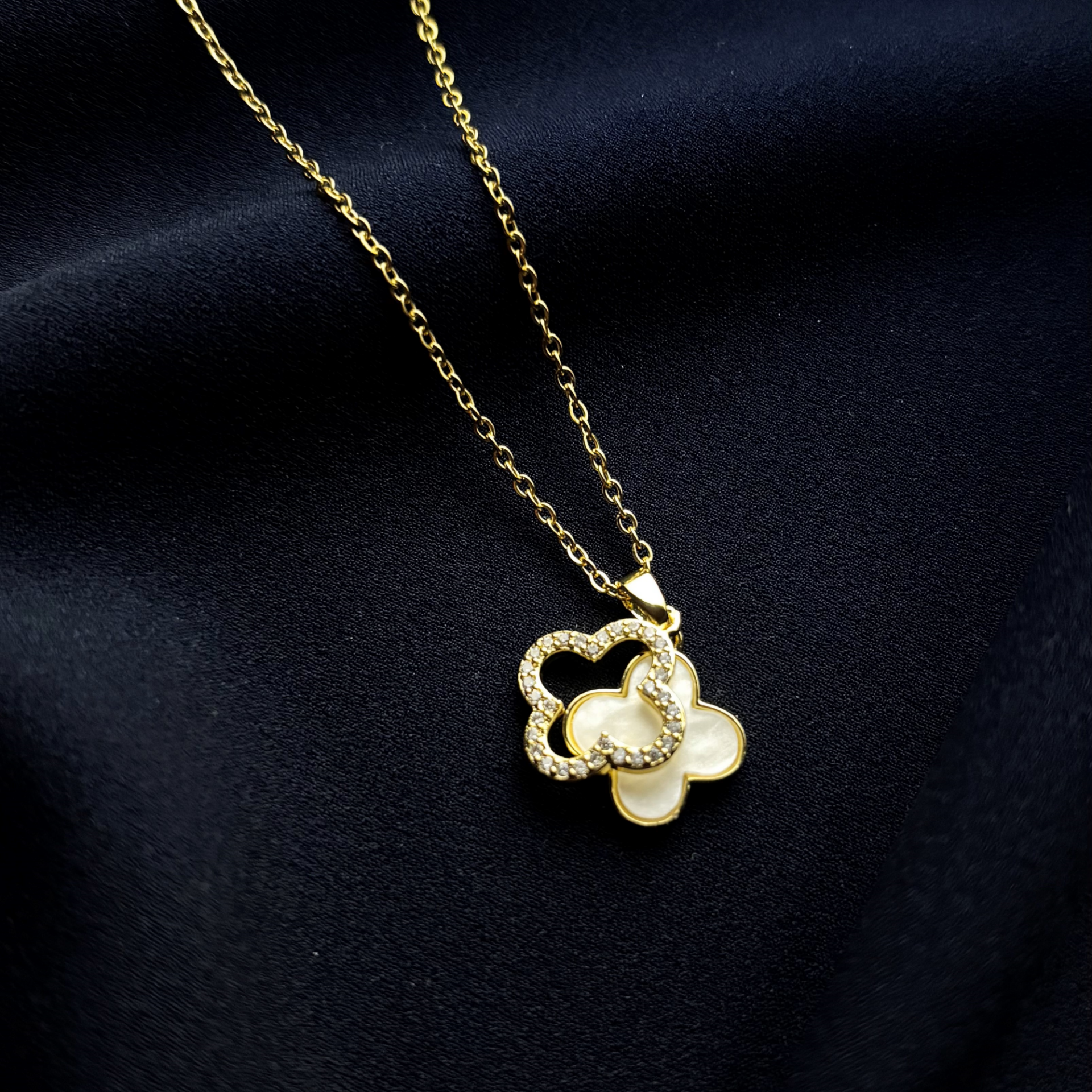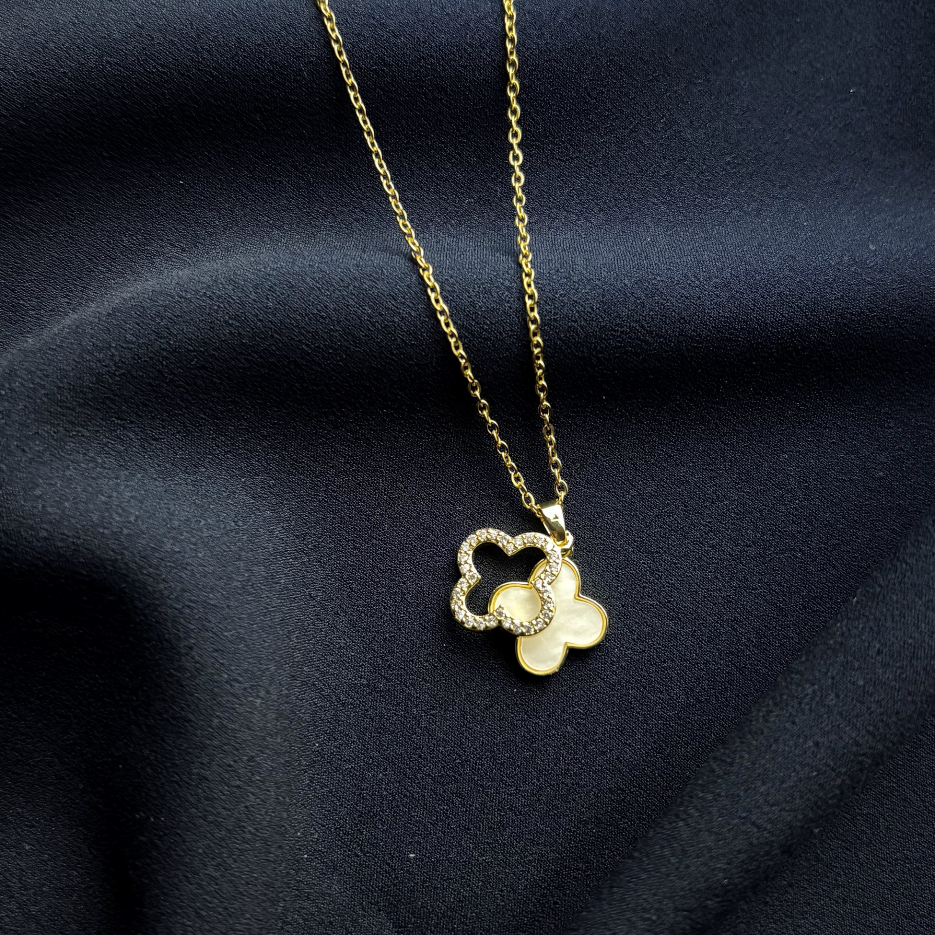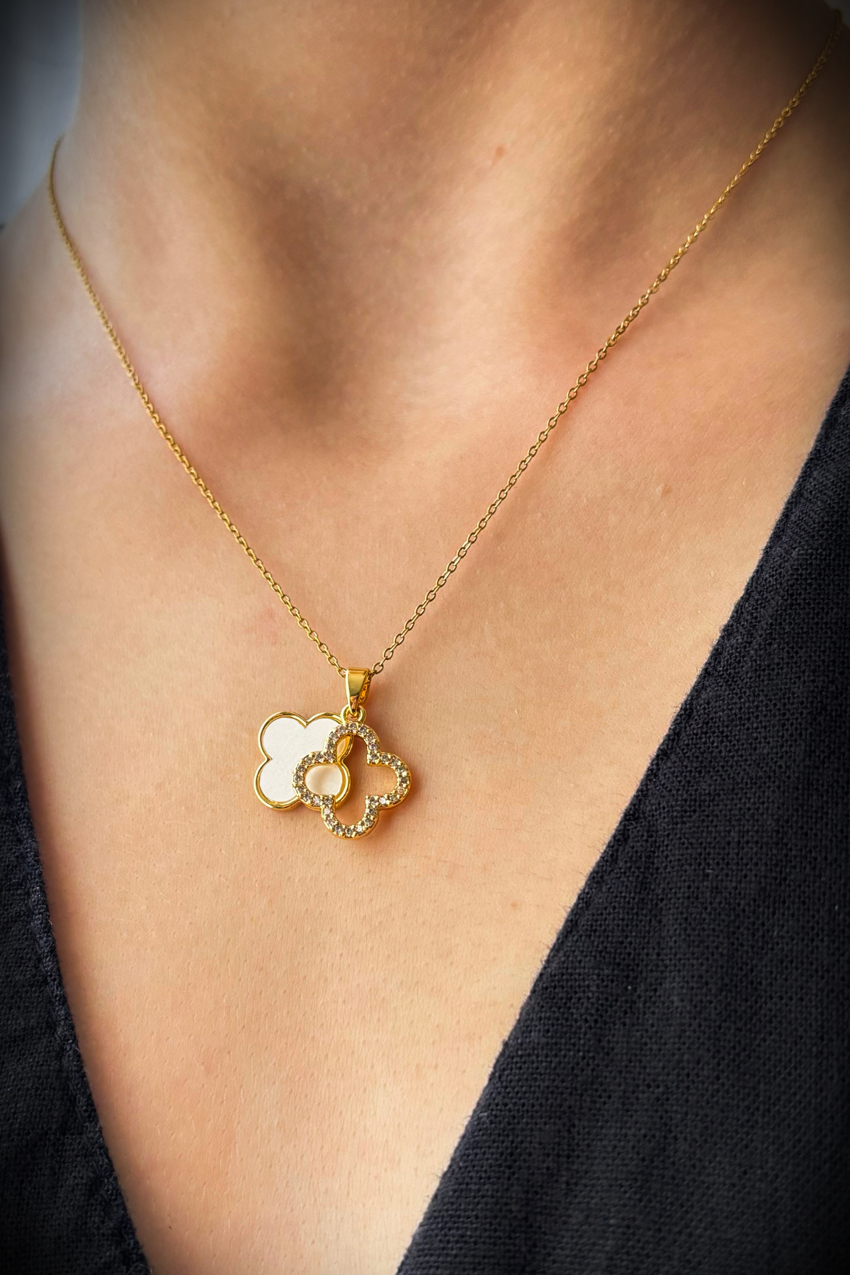 2li Beyaz Taşlı Ayrılan Yonca Kolye