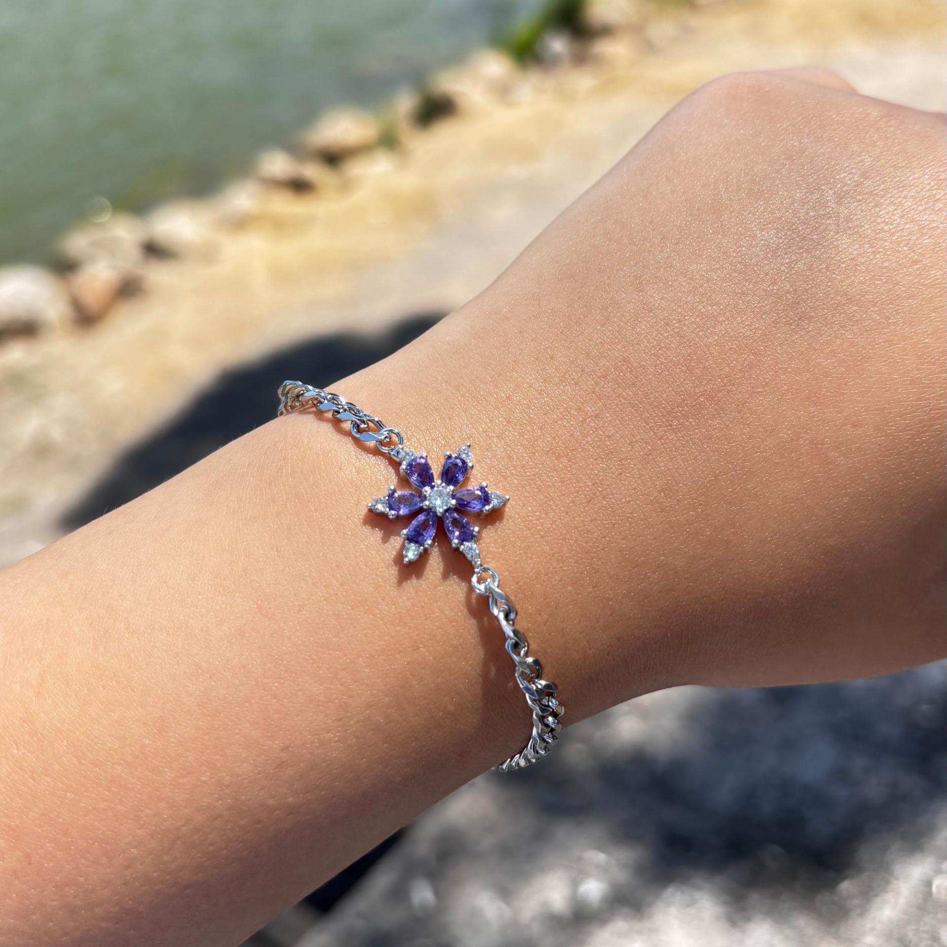 Gümüş-Arpa Zincir Lotus Çiçek Bileklik
