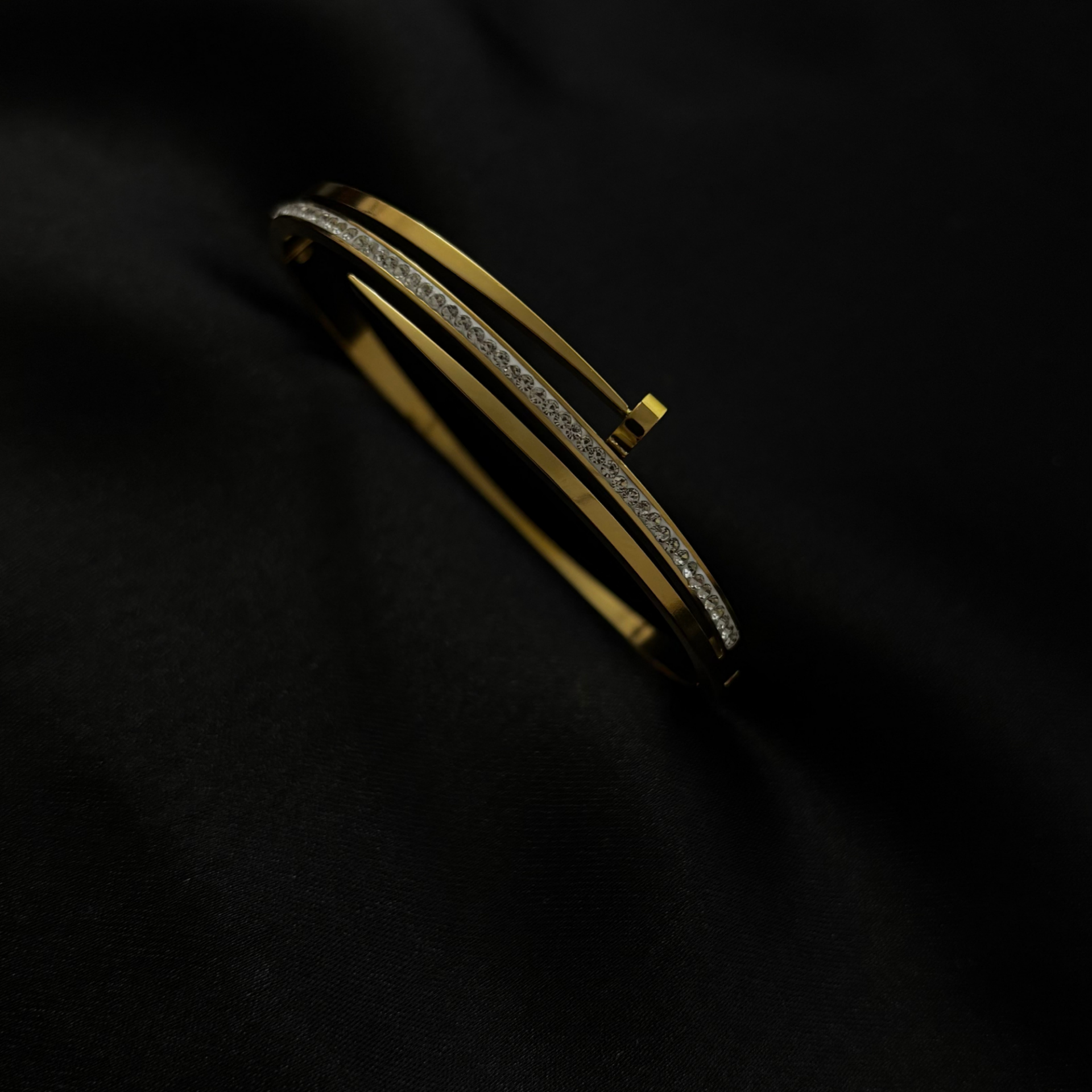 Gold-Zirkon Taşlı Kelepçe Bileklik
