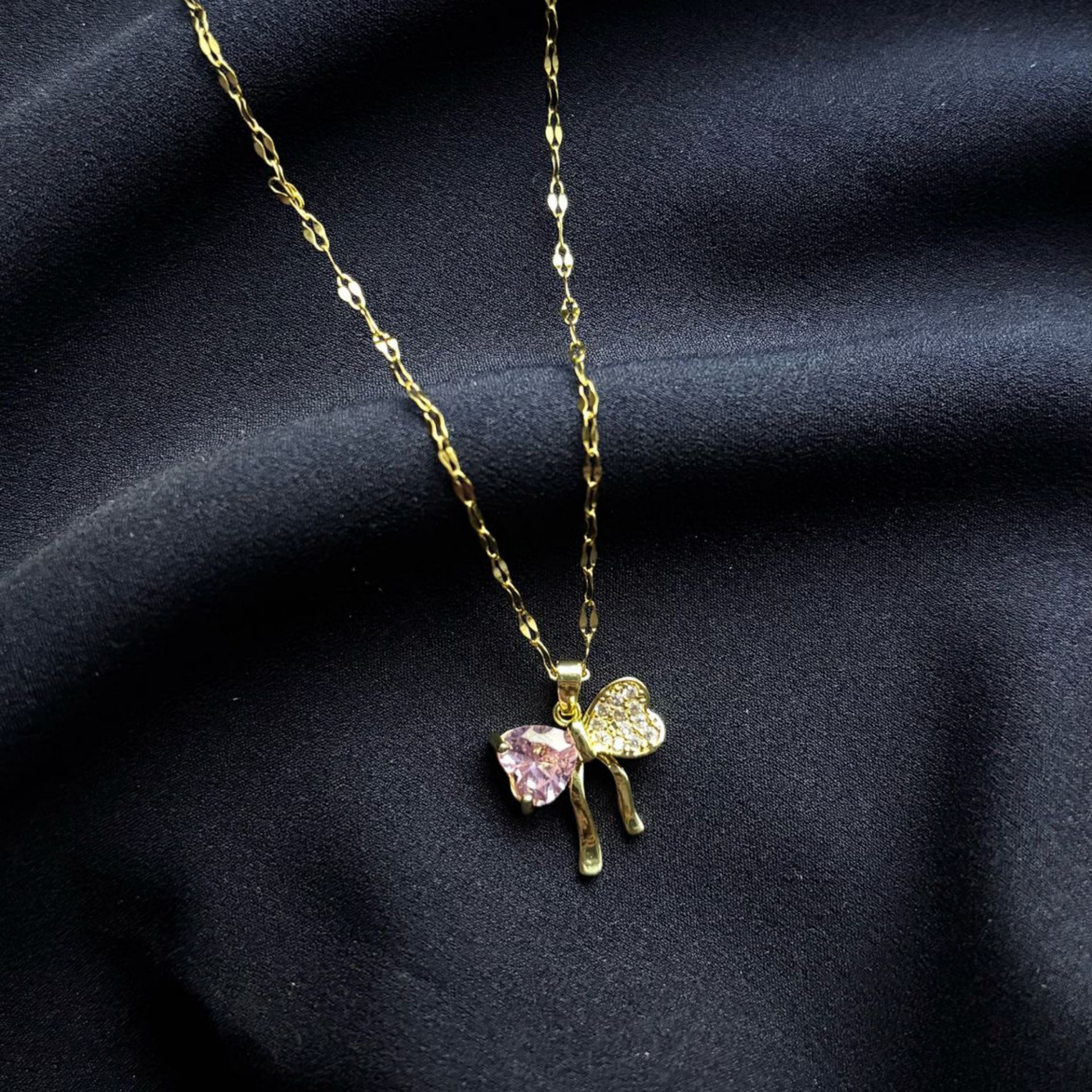 Feminen ve şık tasarımıyla öne çıkan Çelik Pembeli Taşlı Fiyonk Kolye, romantizmi ve zarafeti bir araya getiriyor. Pembe taş detayları, kolyeye göz alıcı bir ışıltı katarken, fiyonk figürü şıklığı ve masumiyeti simgeliyor. Dayanıklı çelik yapısıyla uzun ömürlü kullanım sunan bu özel parça, hem günlük hem de özel günlerinizde stilinizi tamamlayacak.