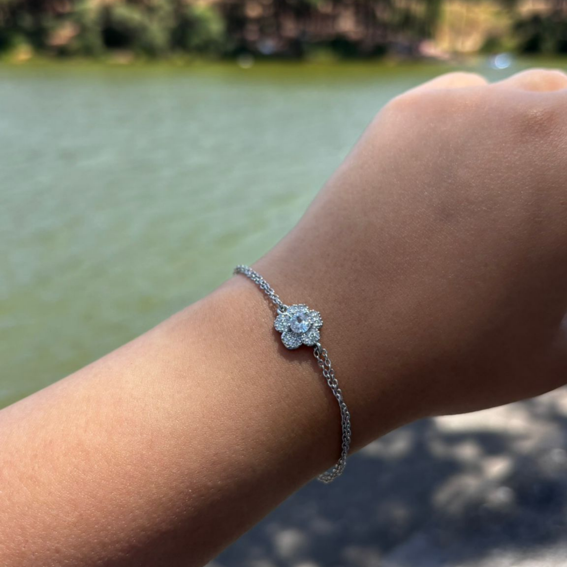 Gümüş-Zirkon Taş Çiçek Bileklik