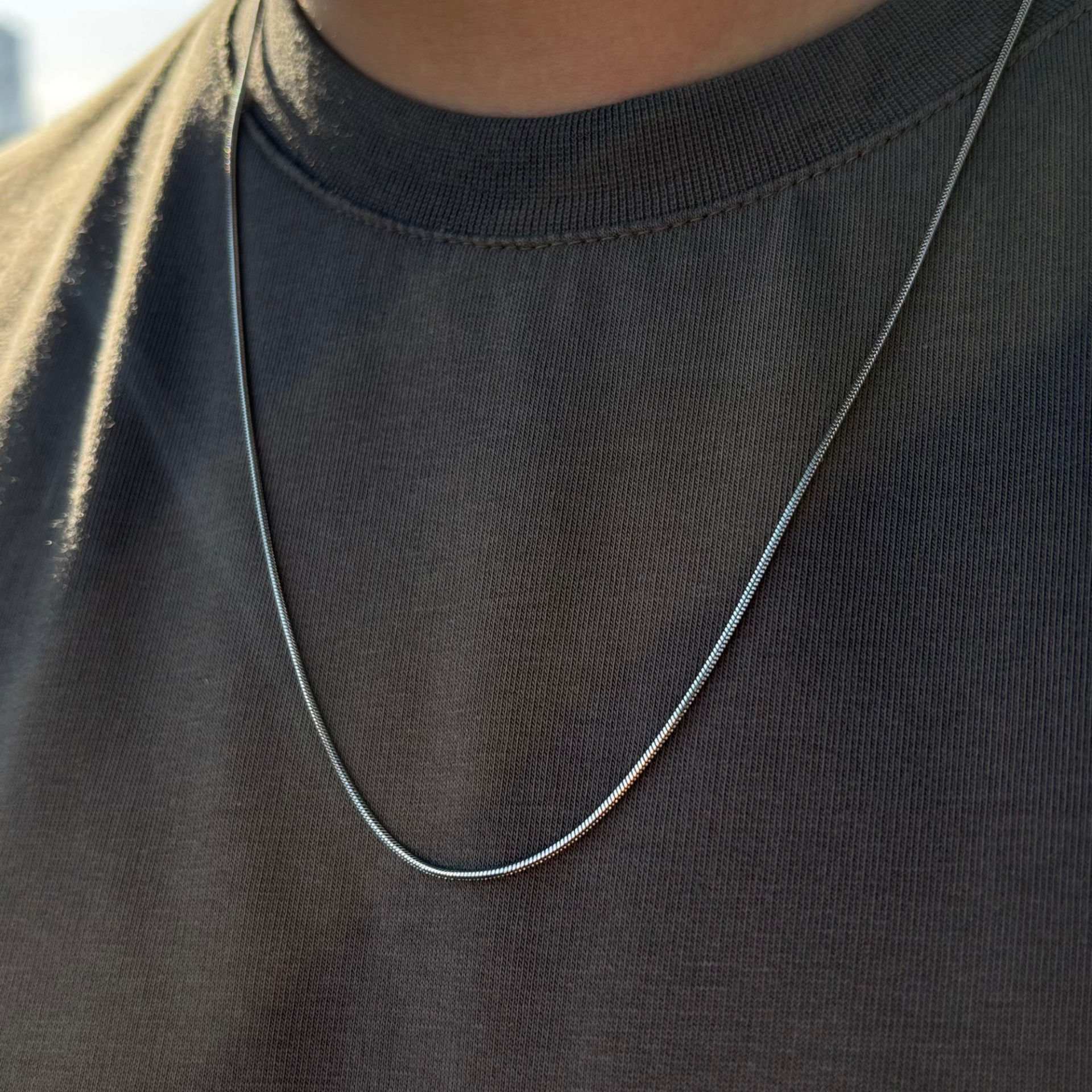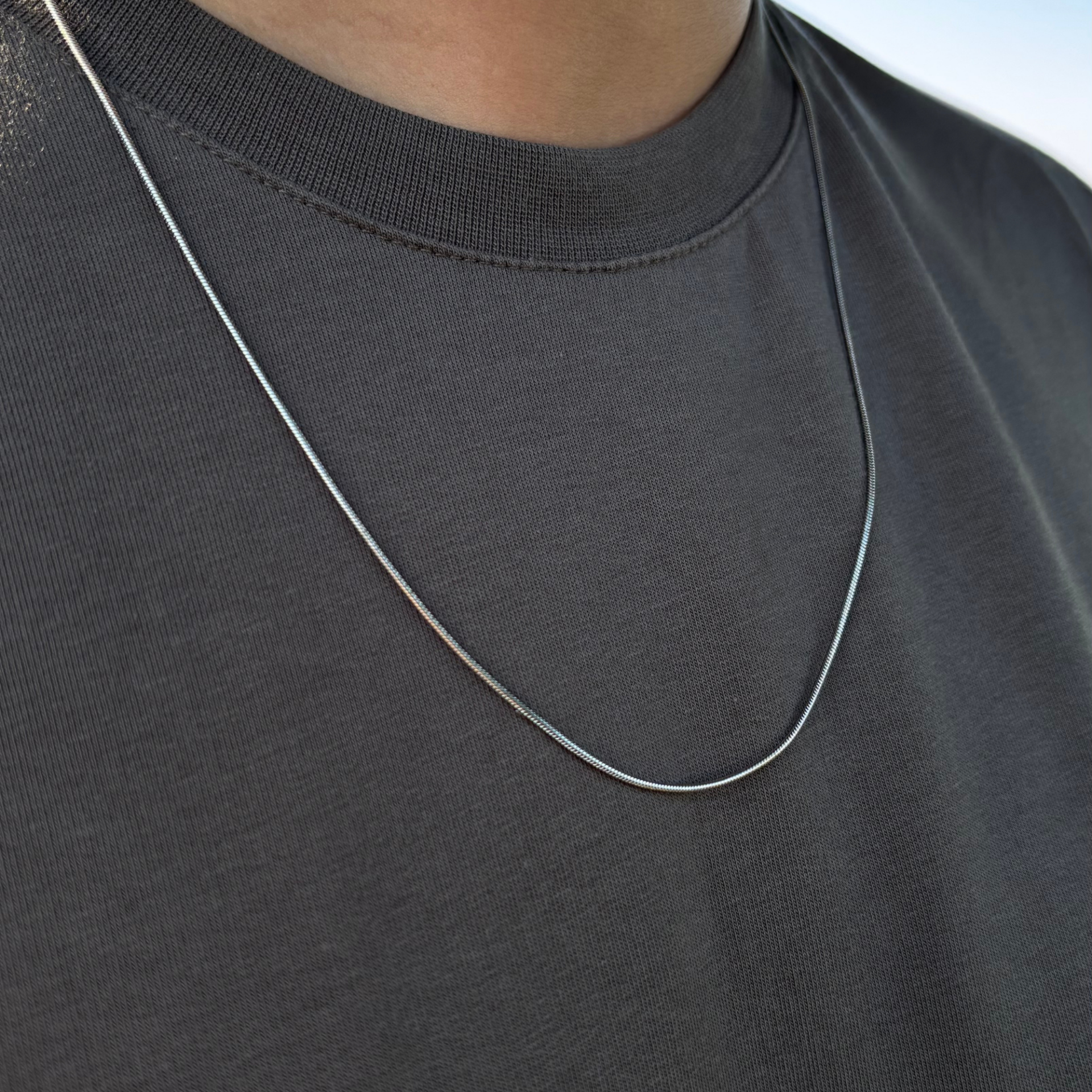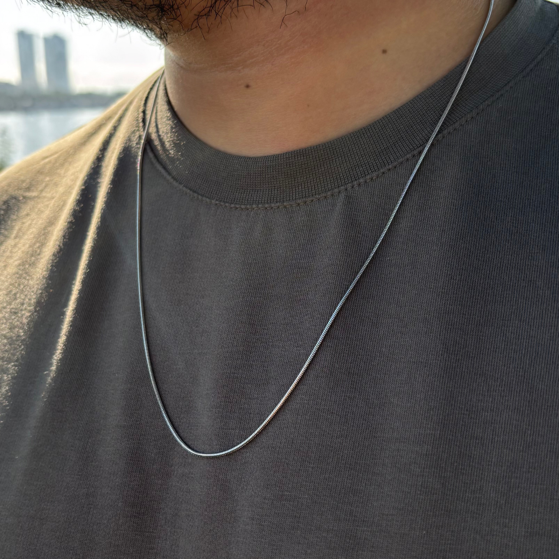 Unisex Gümüş Renk İnce Yılan Model Zincir Kolye, minimal tarzı sevenler için modern ve sade bir dokunuş sunar. İnce yapısı ve yılan zincir dokusu ile hem günlük kullanıma hem de özel günlerde kombinlerinize şıklık katar.