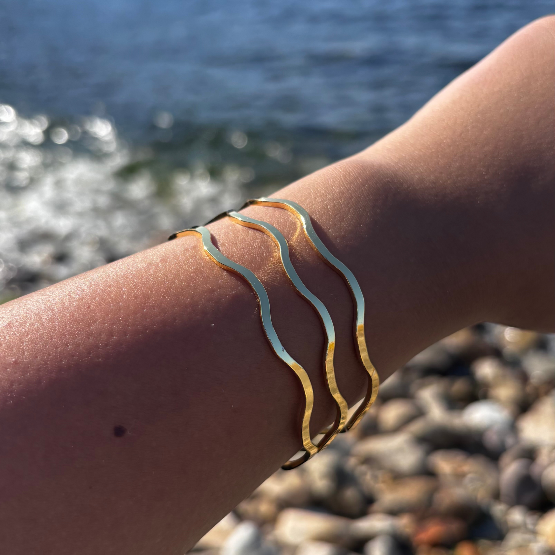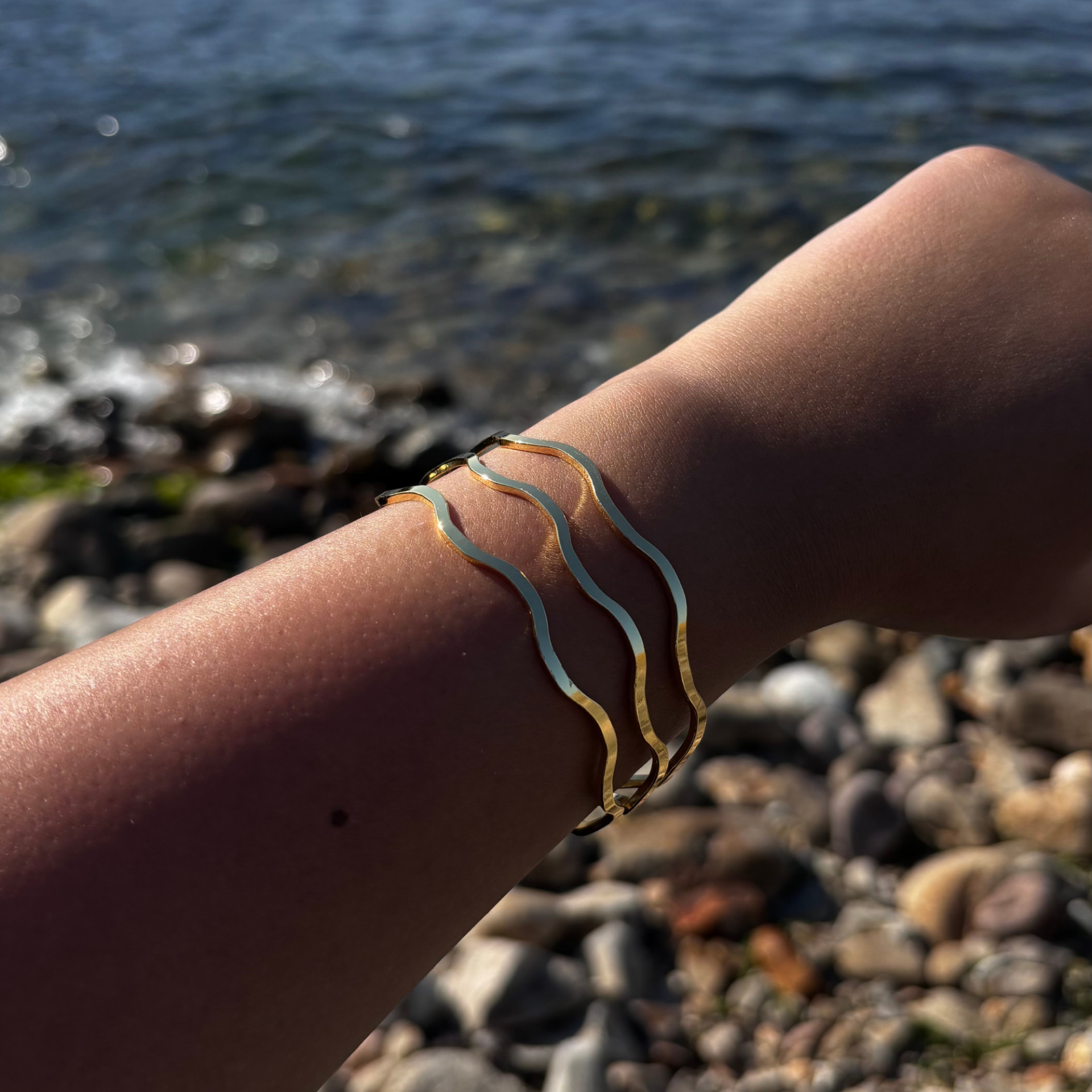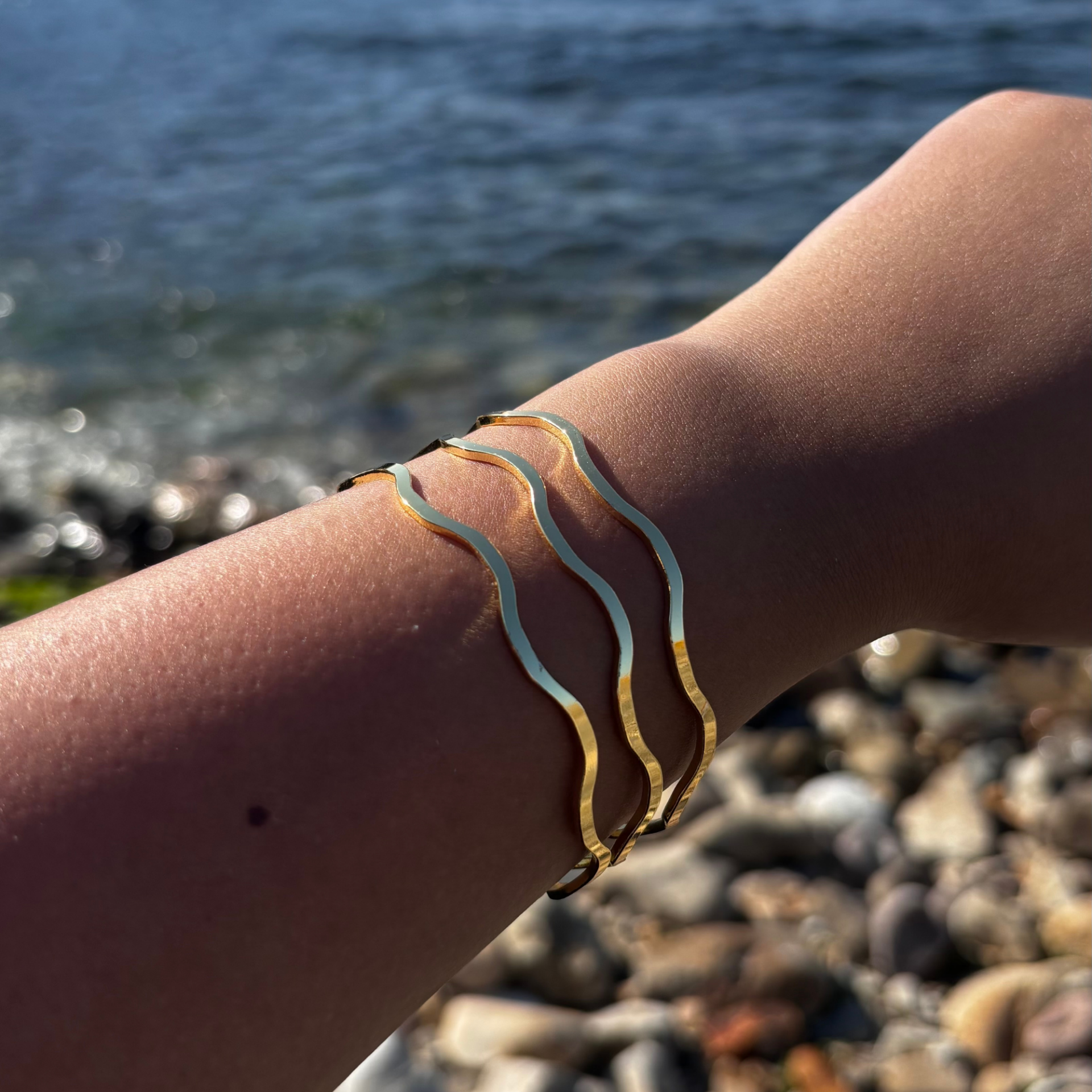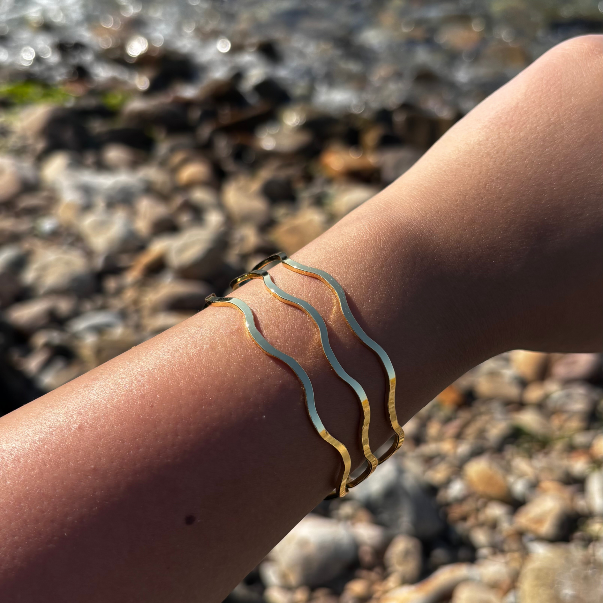 Gold - Çelik 3'lü Zikzak Desenli Ajda Bilezik