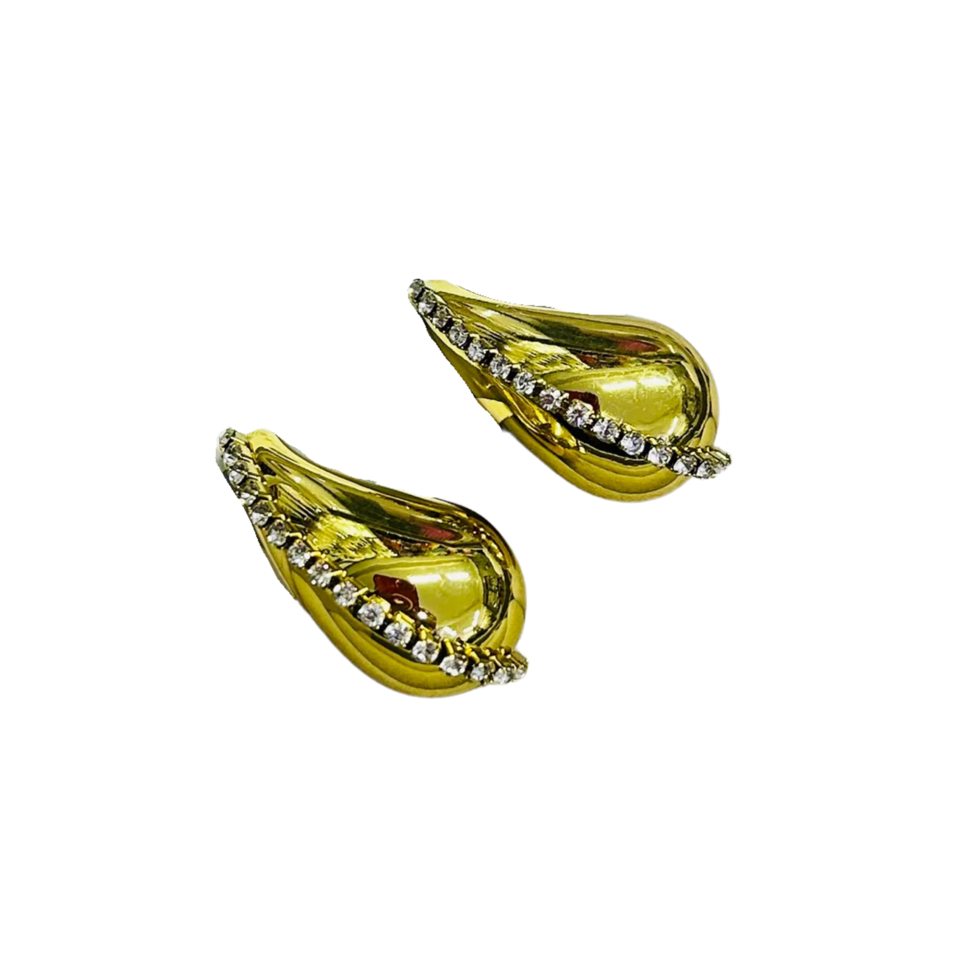 Gold-Suyolu Taşlı Damla Küpe