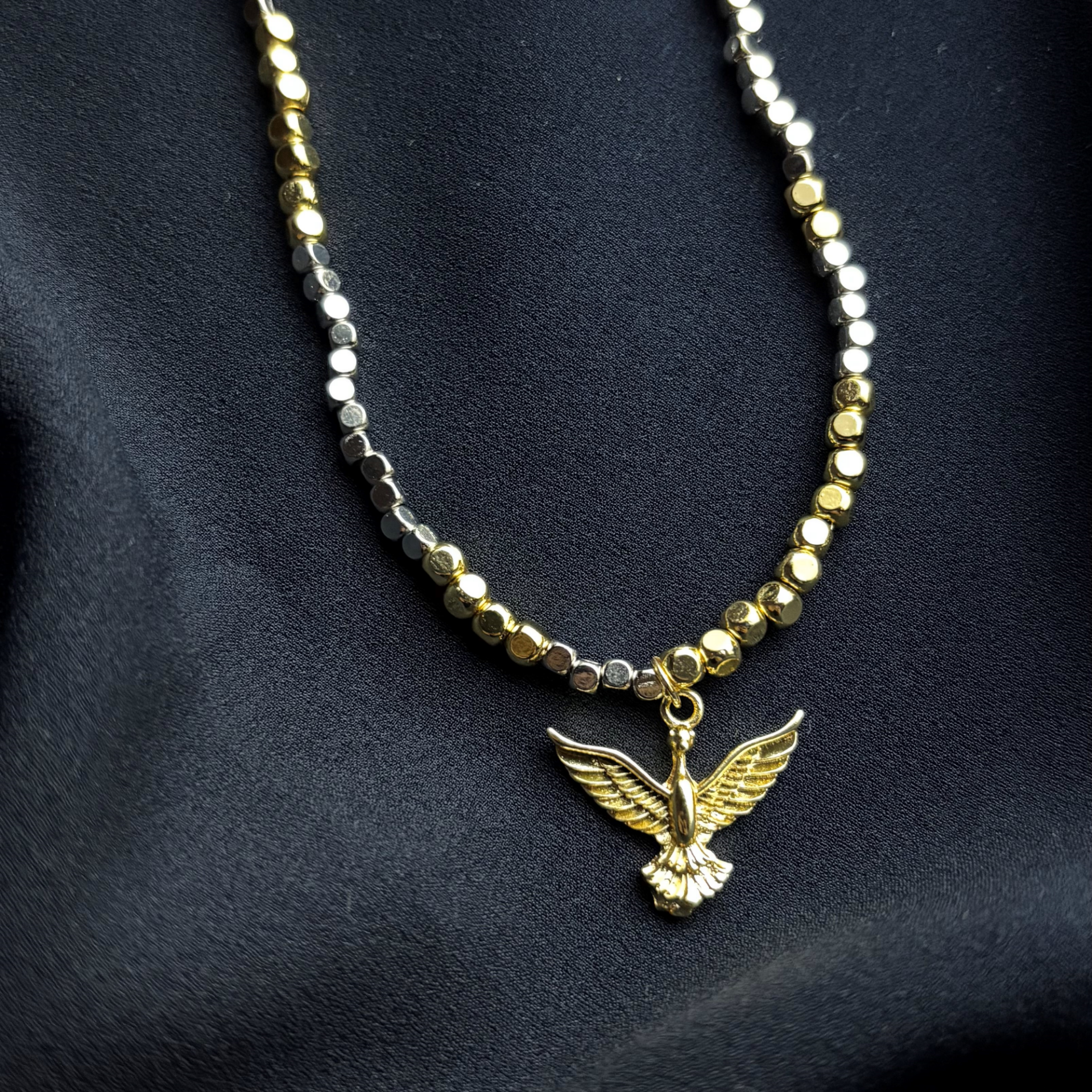Gold-Gümüş Küp Bohem Anka Kuşu Kolye