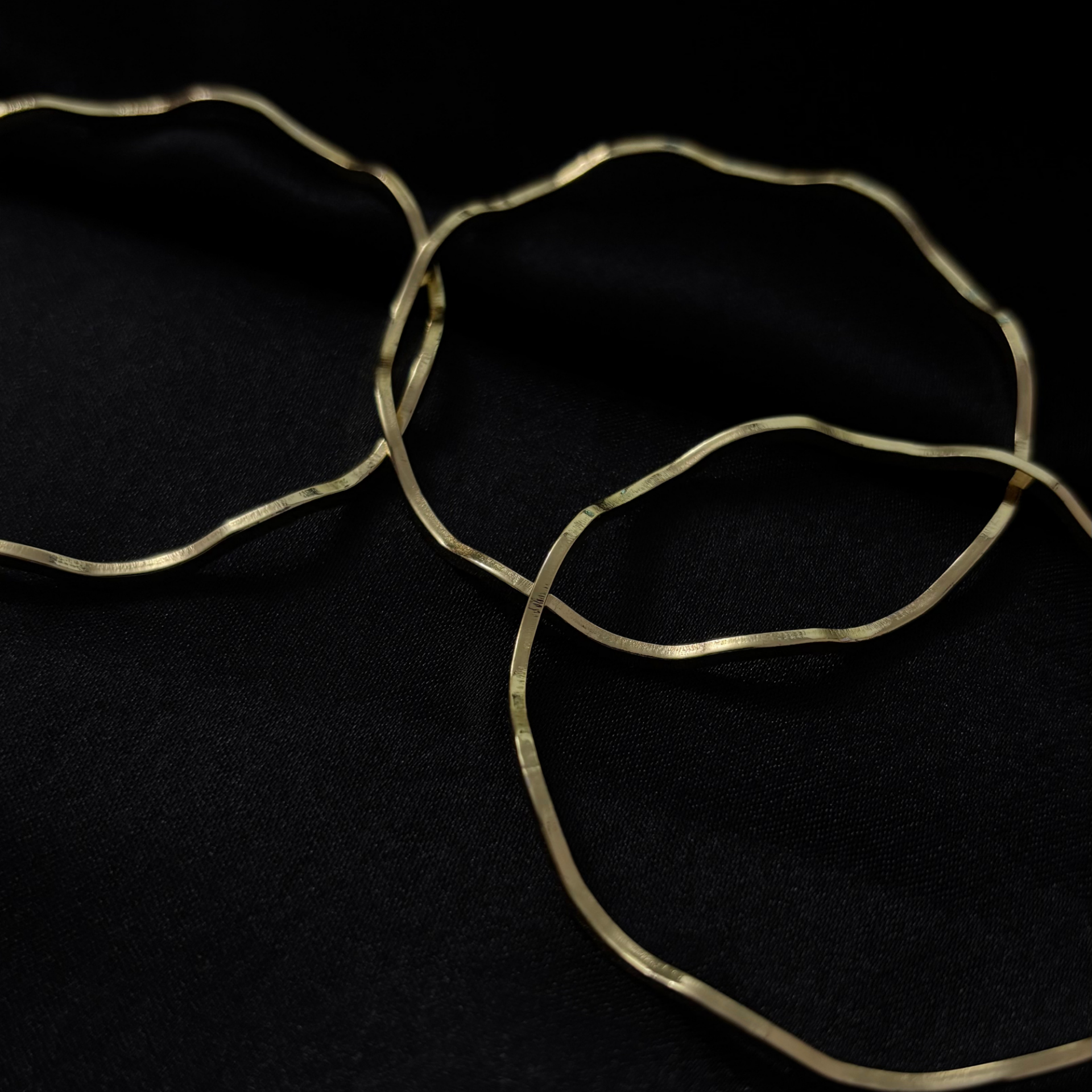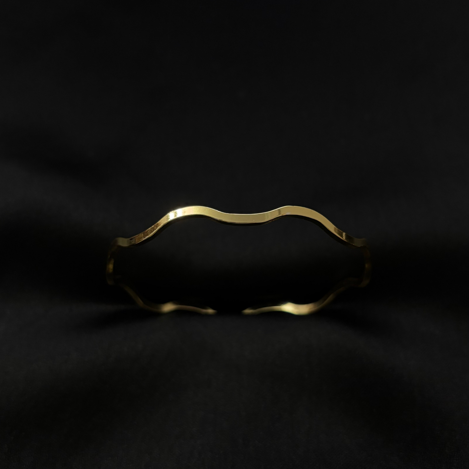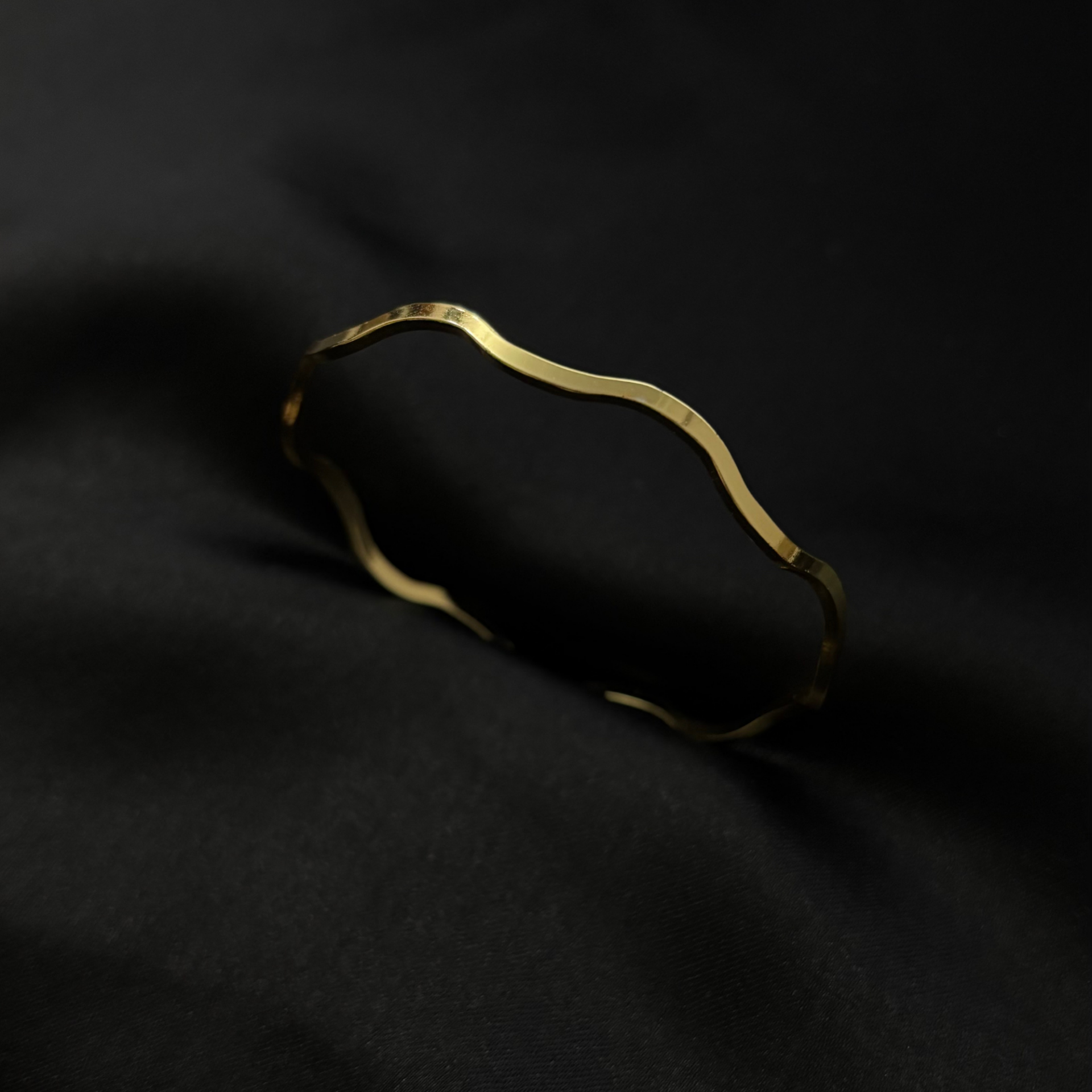 Zikzak formu, yaşamın iniş çıkışlarını zarif bir ritme dönüştürürken; altın tonunun sıcak ışıltısı bilekte güçlü ama sade bir etki yaratır.