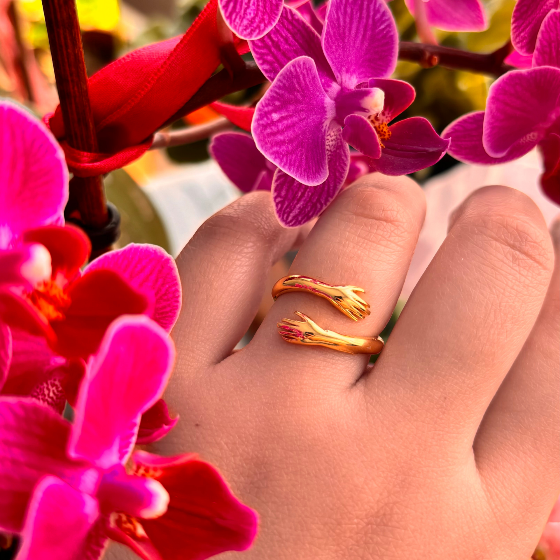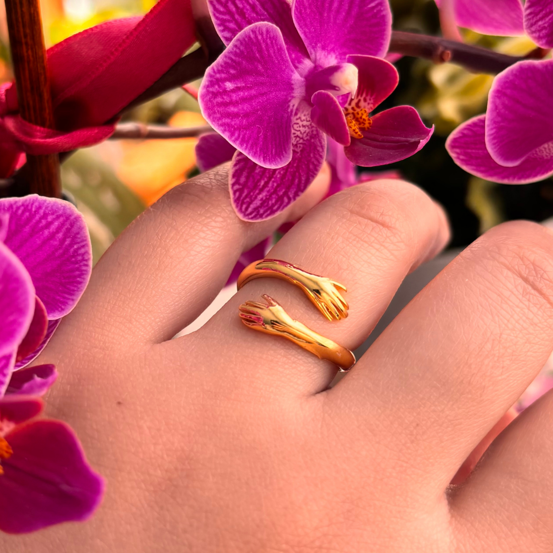 Gold-Sarılan Eller Ayarlanabilir Yüzük