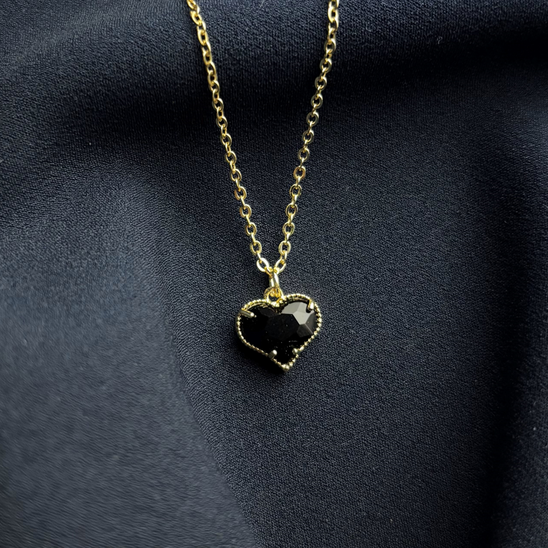 Gold Siyah Renk Kalp Kolye – Aşkın Zarif Yansıması