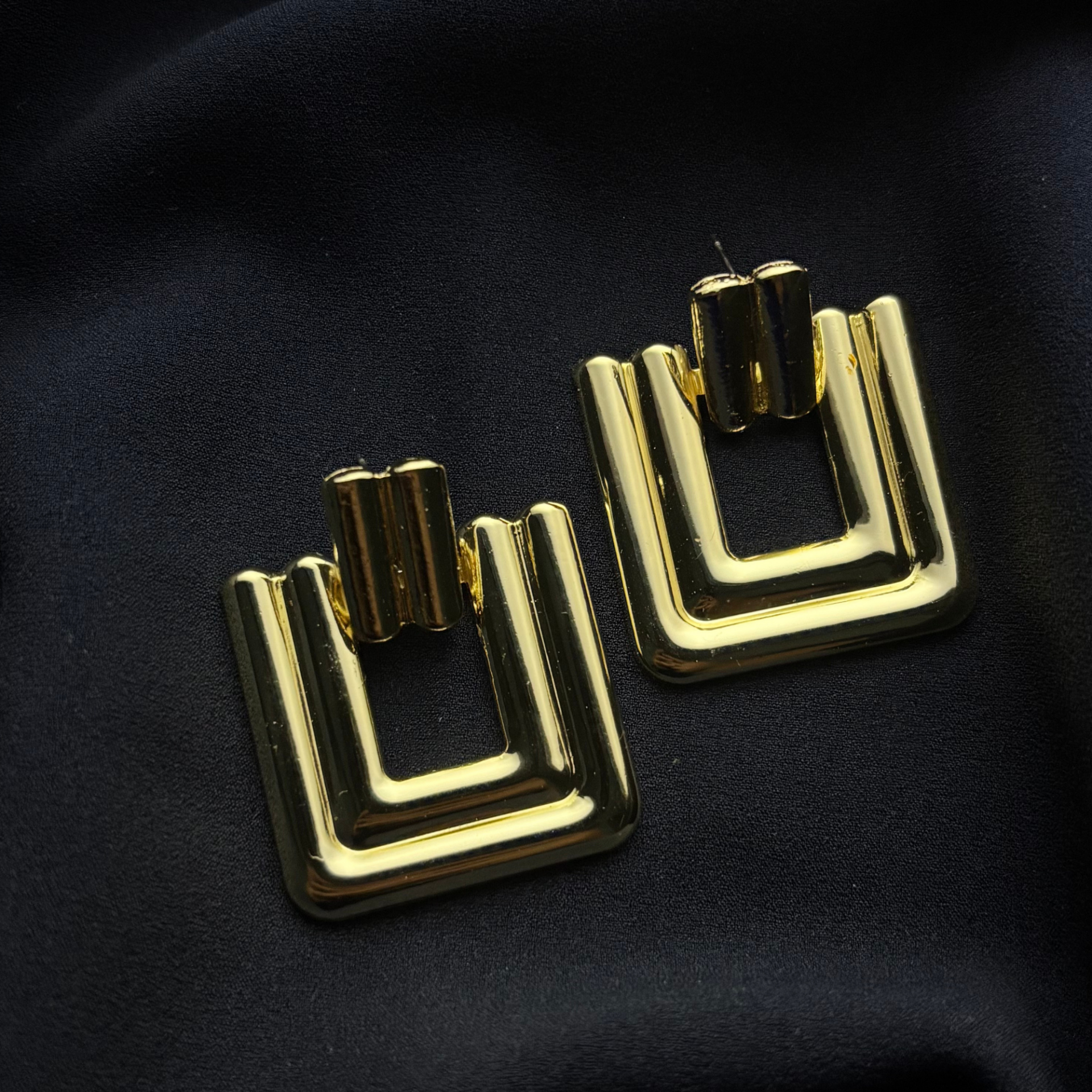 Glossy Jewelery’nin altın tonlu Sallantılı Kare Küpe tasarımı, modern formu ve akıcı duruşuyla güçlü ama sade bir şıklık sunuyor.