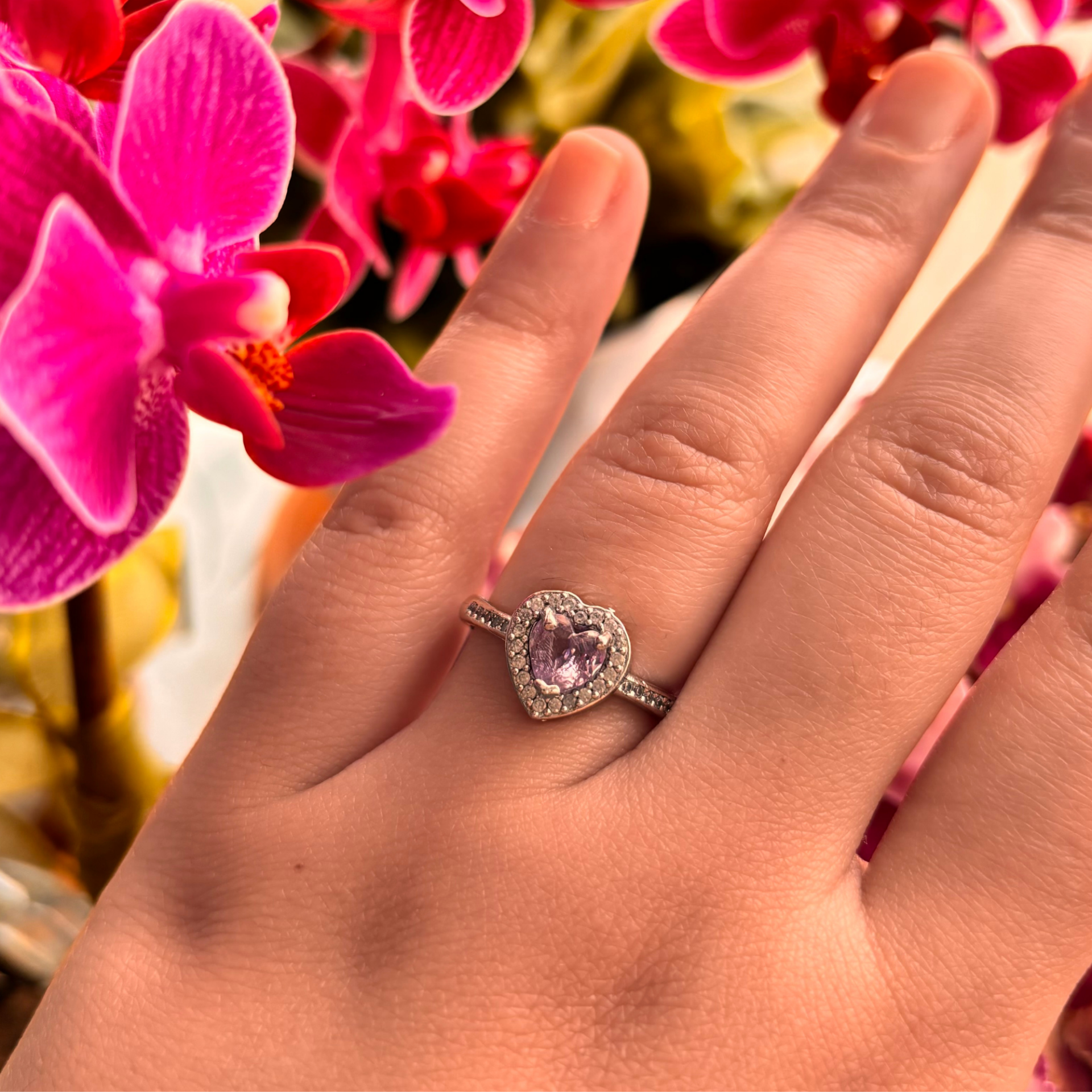 Gümüş-Pembe Taşlı Kalp Yüzük