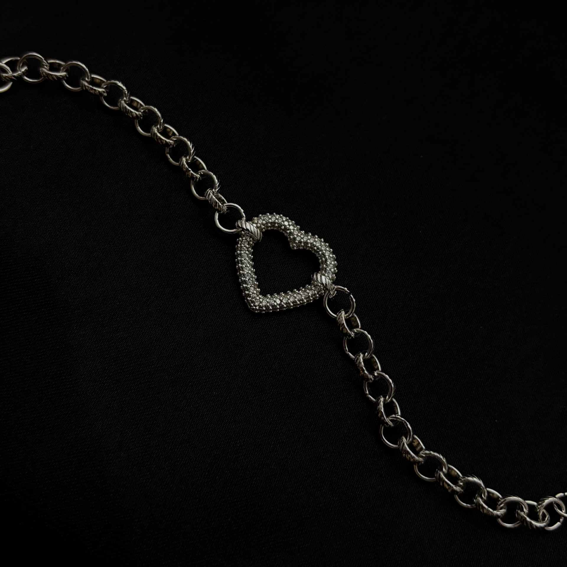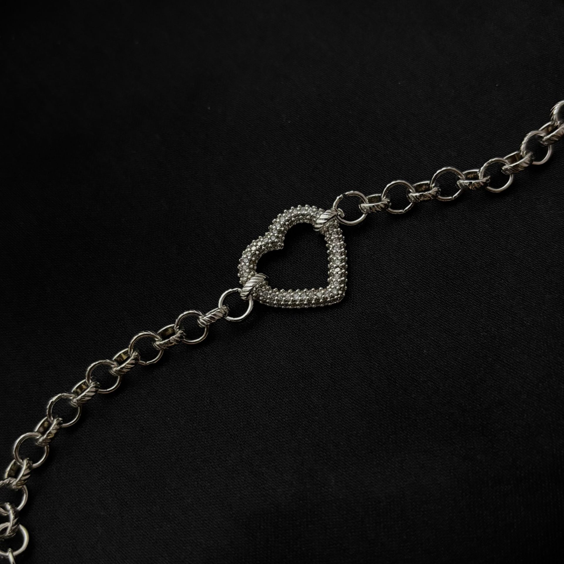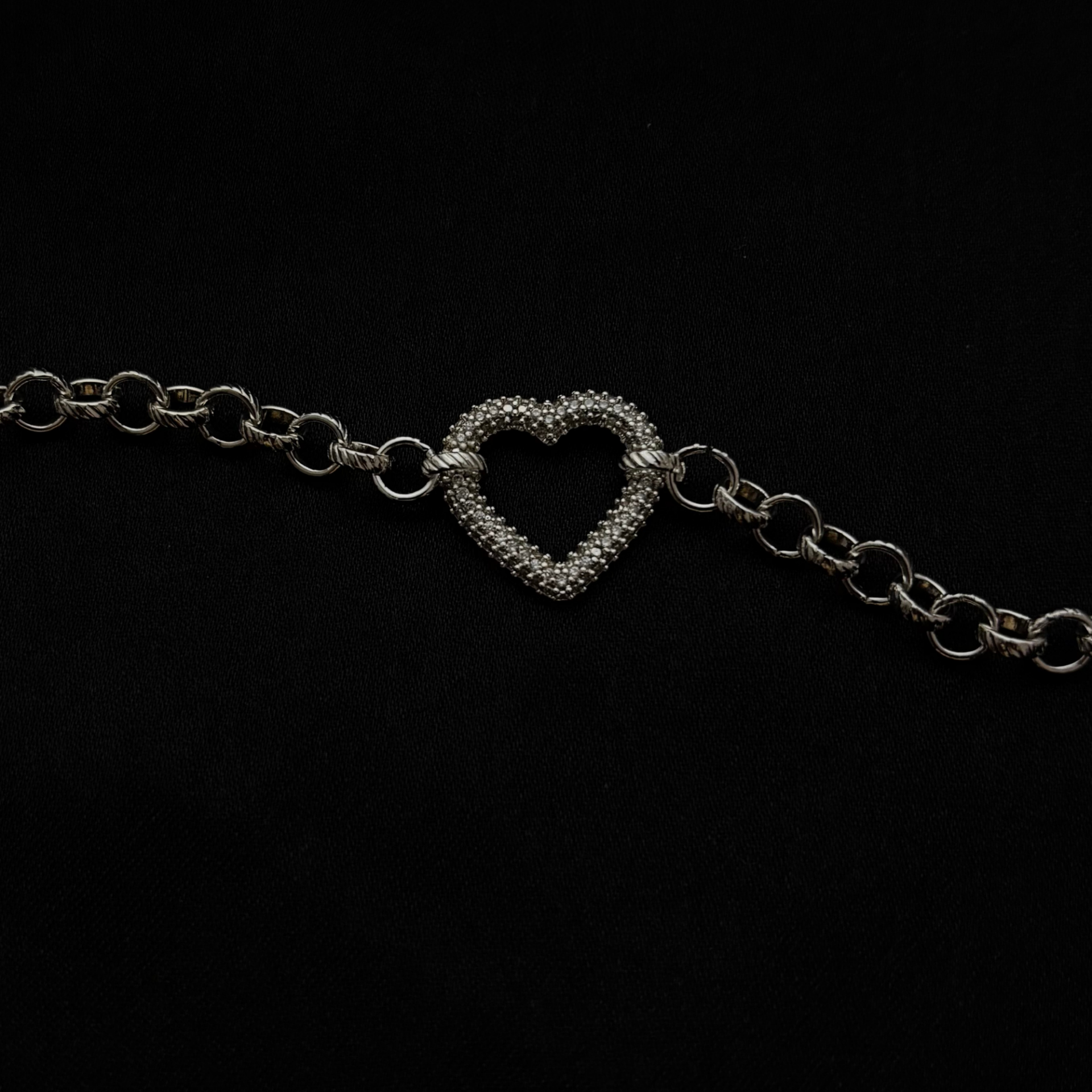 Gümüş rengin soğuk ışıltısı, kalp figürünün duygusal enerjisiyle birleşerek bilekte sade ama anlamlı bir parıltı oluşturur.