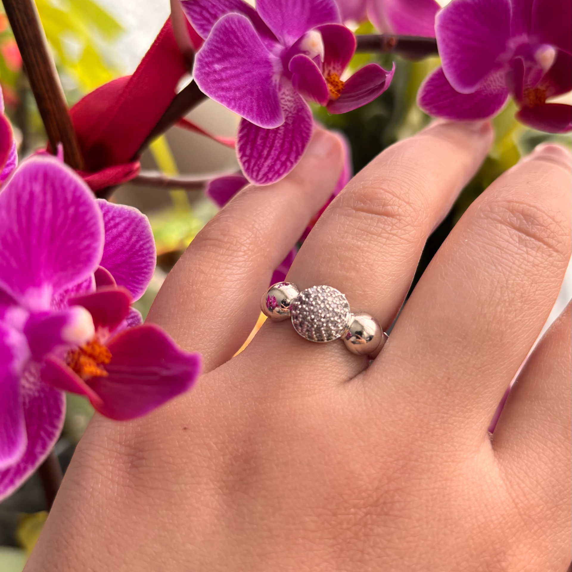 Gümüş Renk Yuvarlak Taş Yüzük – Işıltıyla Tamamlanan Zarafet