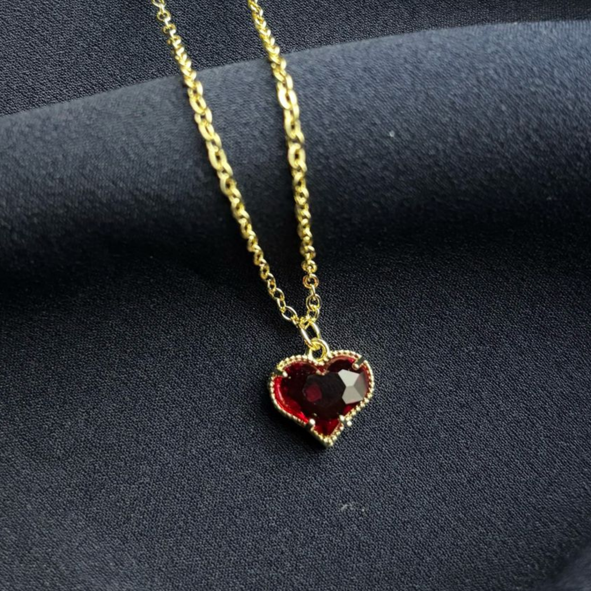 Parlak kırmızı kalp taşı, romantizmi ve şıklığı bir araya getirirken, zarif zinciriyle her kombininize uyum sağlar.