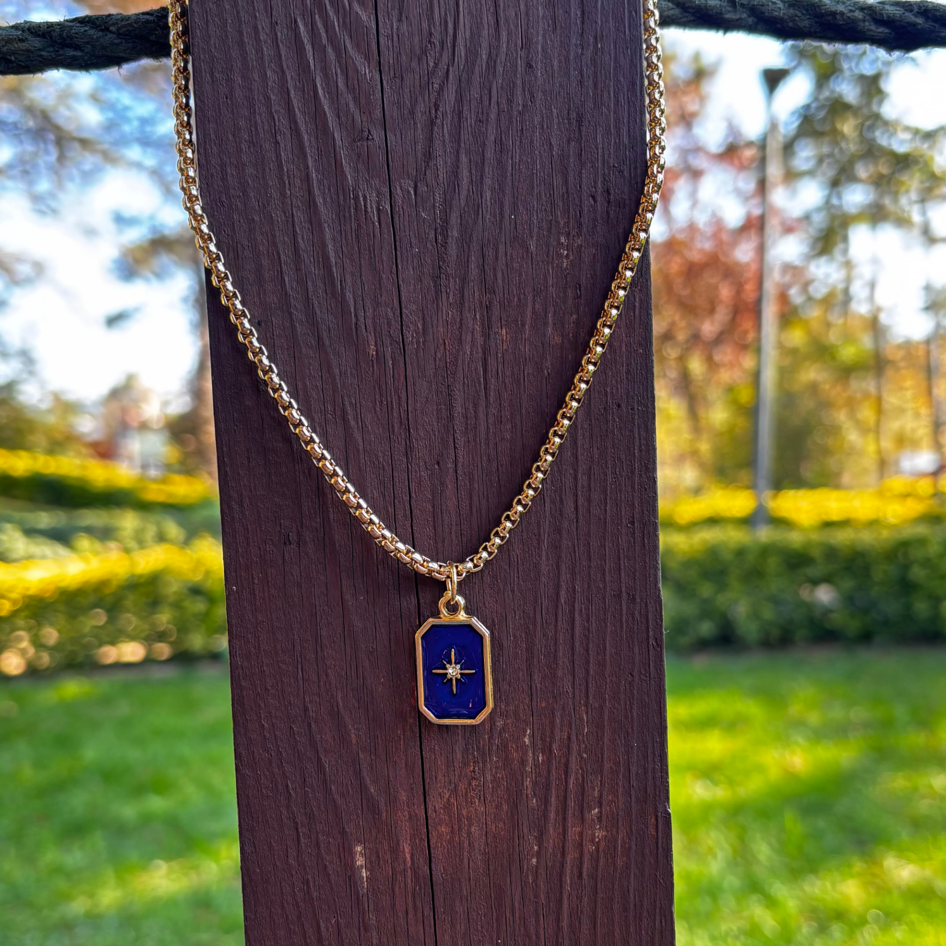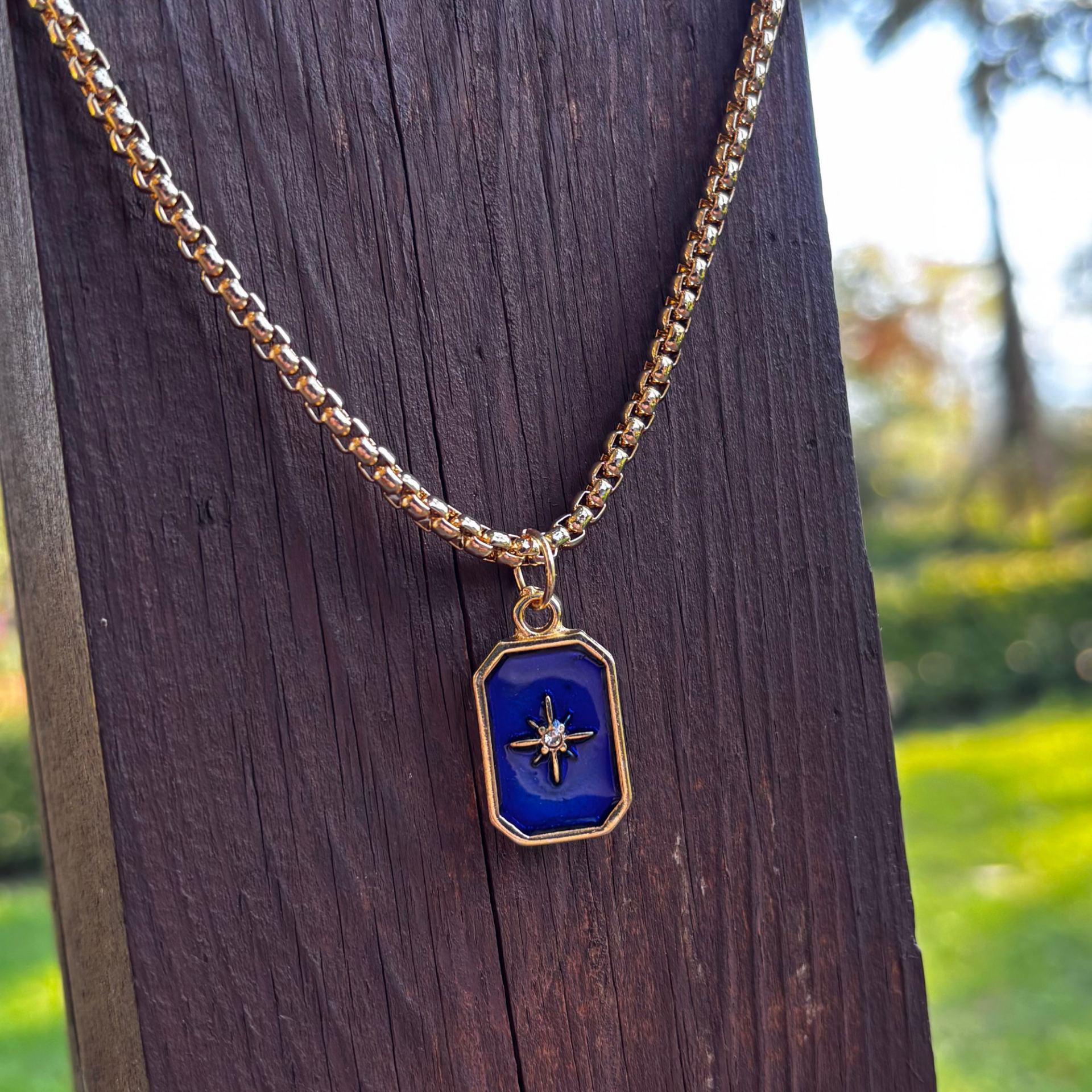 Mavi Renkli Mineli Kutup Yıldızı Kolye (50 CM) Zincir Uzunlukta