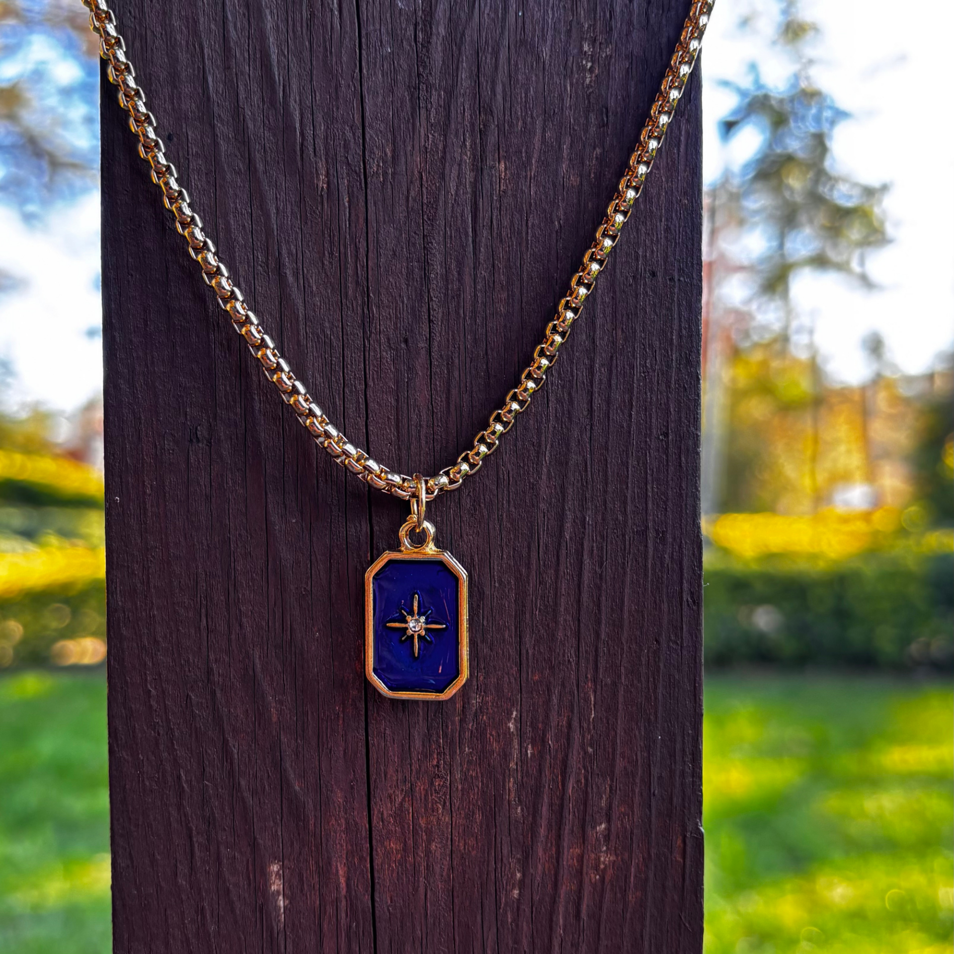 Glossy Jewellery’nin özel tasarımı Mavi Renkli Mineli Kutup Yıldızı Kolye, gökyüzünün büyüsünü zarif bir formda boynuna taşır.