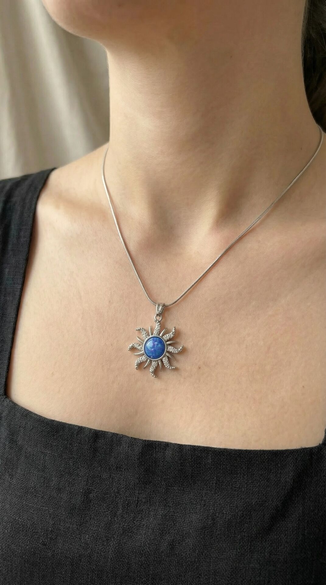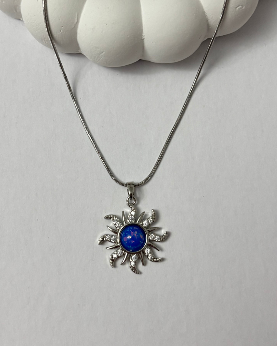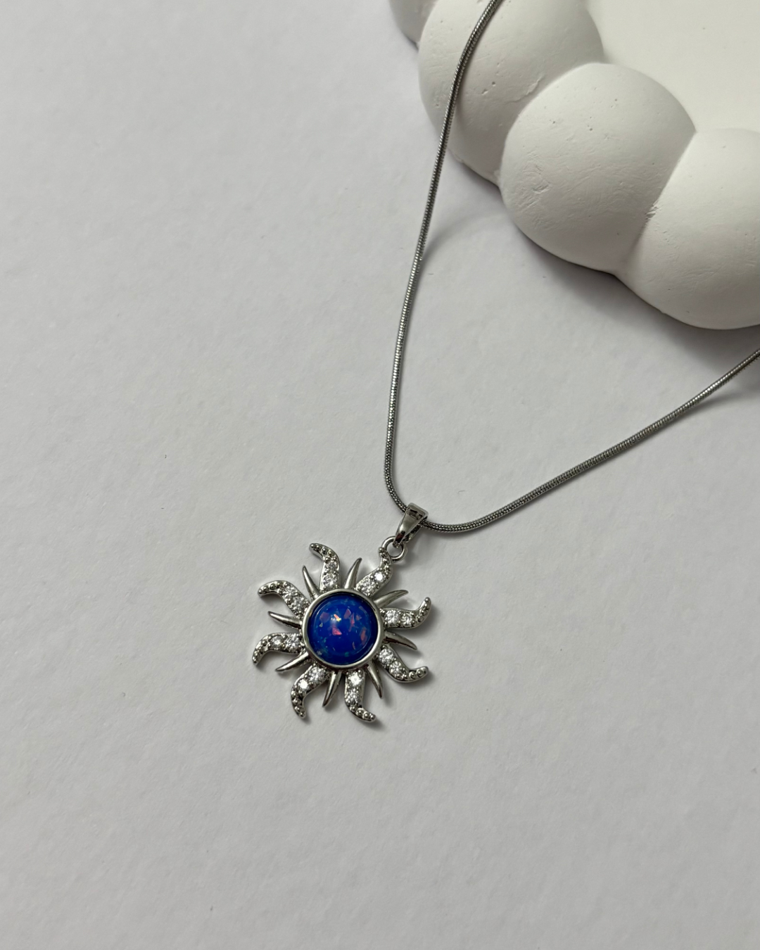 Işıltısını güneşten alan bu özel tasarım kolye, mineli yüzeyi ve parlak zirkon taş detaylarıyla boynunuzda zarif bir parıltı yaratır.