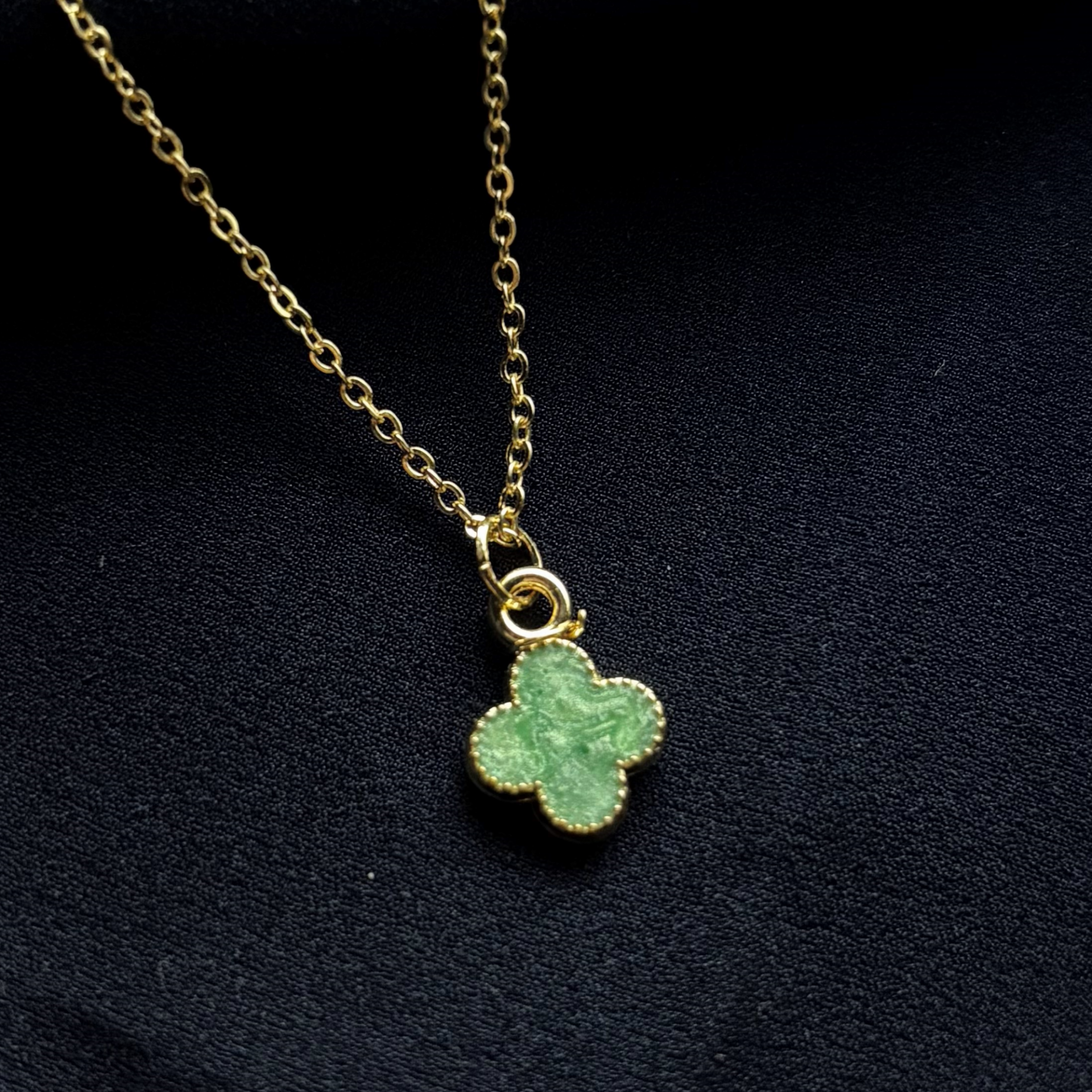Gold-Minimal Yeşil Cleff Yonca Kolye