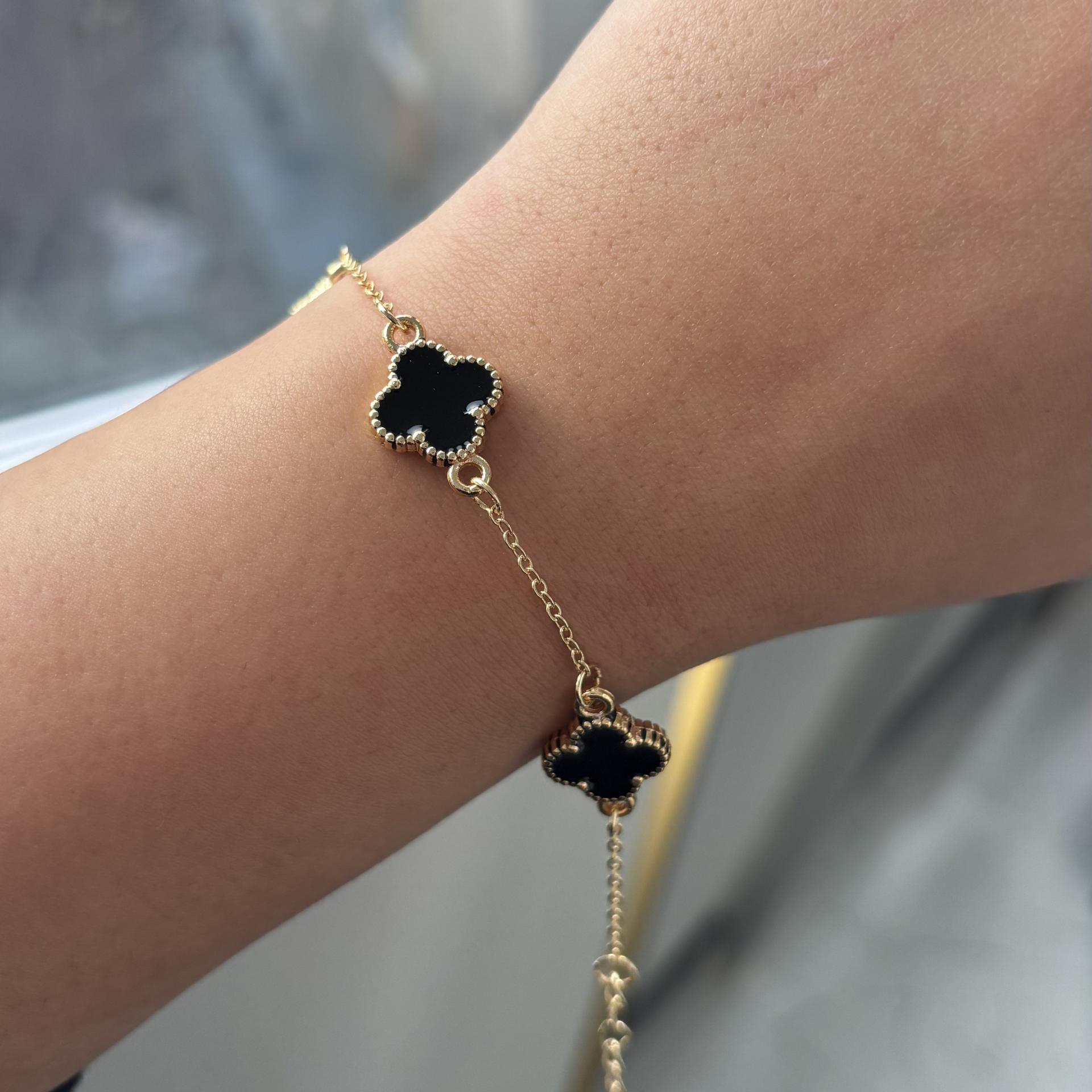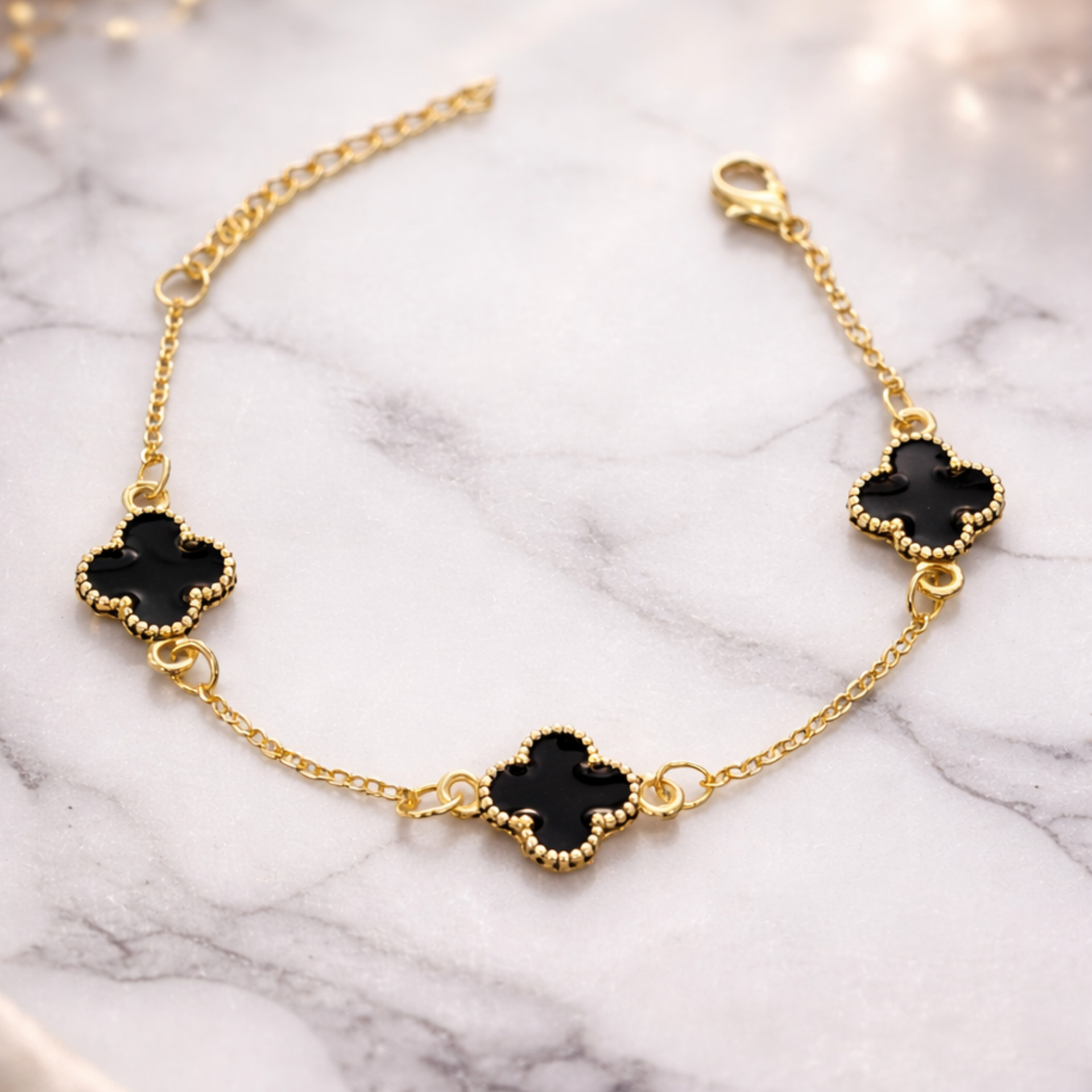 Siyah Yonca Detaylı Gold Renk Kadın Çelik Bileklik